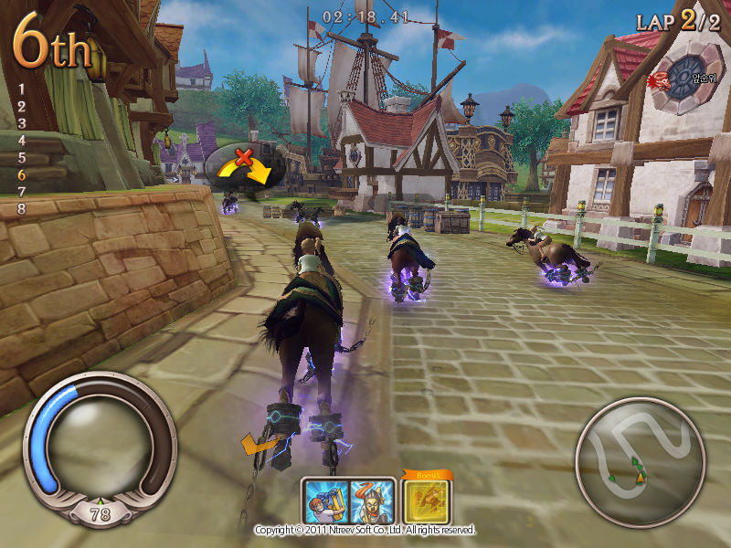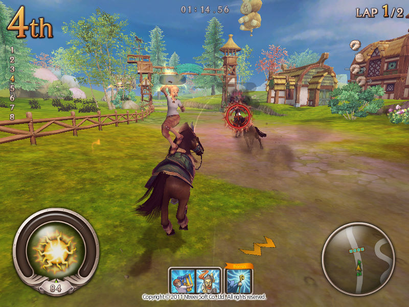 競速賽與魔法賽的遊戲方法相似,只是把全部的魔法都改成加速,所以競速賽對玩家來說是能展現實力的好地方。遊戲中也有連續加速的設計,如果在一定時間內連續按加速,速度是可以疊加的。