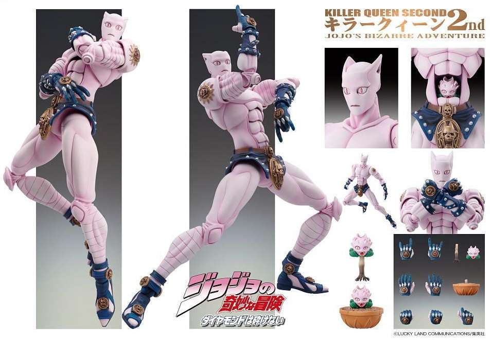 「超像可動 ジョジョの奇妙な冒険 第四部 25.キラークイーン・セカンド」 發售日期:2 月下旬 製作單位:ディコスエンターテインメント 定 價:3675 日圓 備 註:PVC、ABS 塗裝完成品,全高約 160 mm |
