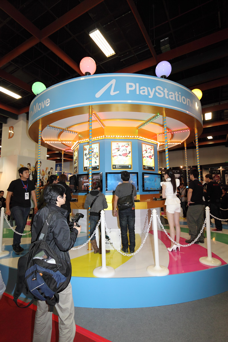 在主打直覺體感的 PlayStation Move 部分,則是配合輕鬆休閒主題,設置了遊樂園旋轉木馬風格的試玩區,讓玩家在美麗展場女郎的指點下盡情遊玩 PlayStation Move 專屬 / 支援遊戲。另一主打的 3D 立體顯示部分也設置了獨立的 3D 試玩區。至於爽快刺激的限制級遊戲,如《