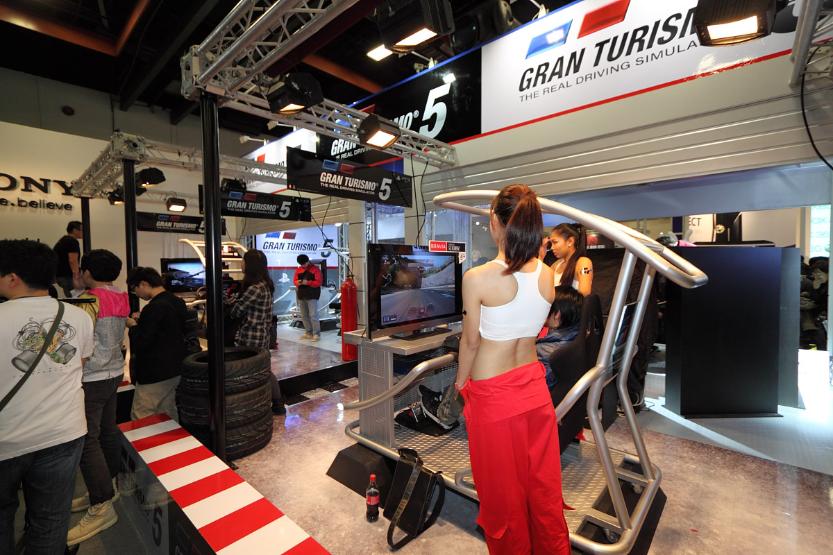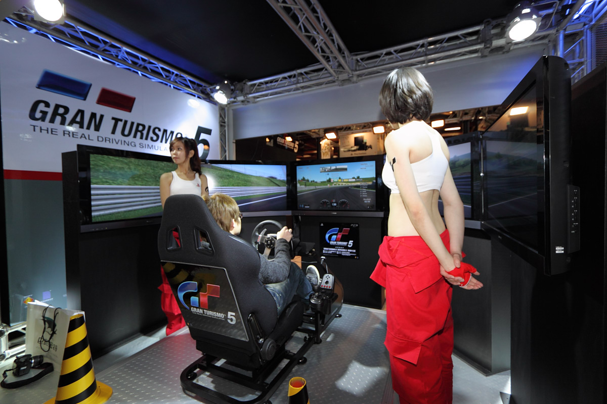 跑車浪漫旅 5》試乘區,不但陳列精心裝飾魄力十足的真實 Nissan GT-R 超級跑車,設置 3D 立體豪華駕駛艙試玩機台提供玩家試玩,還打造了 1 座以 5 台 BRAVIA 液晶電視環繞而成的超環繞試玩駕駛艙,讓玩家充分體驗完全沒入的逼真競速體驗。