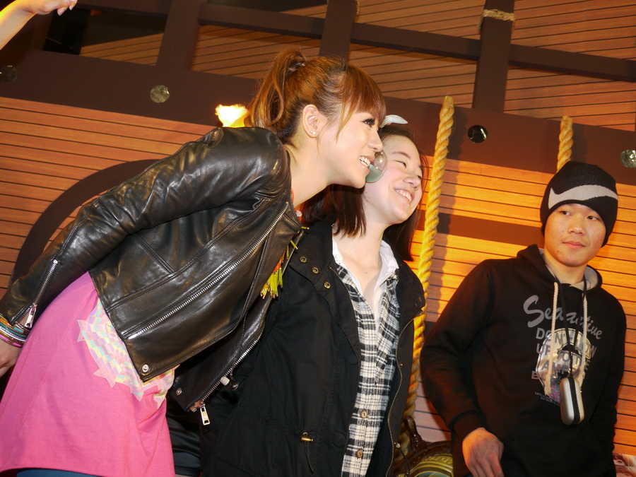 丁噹現場還跟玩家一起玩起「臉貼臉」的「共護星空之石」小遊戲,玩家為了爭取這難得上台與丁噹同樂的機會,都奮力舉手希望吸引丁噹的注意,而她與女粉絲兩人夾著小球,賣力跑到另一邊放入箱子裡,平常就有運動習慣的丁噹,玩起來相當活潑。