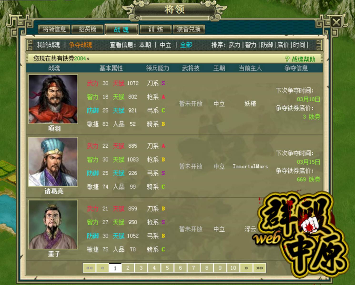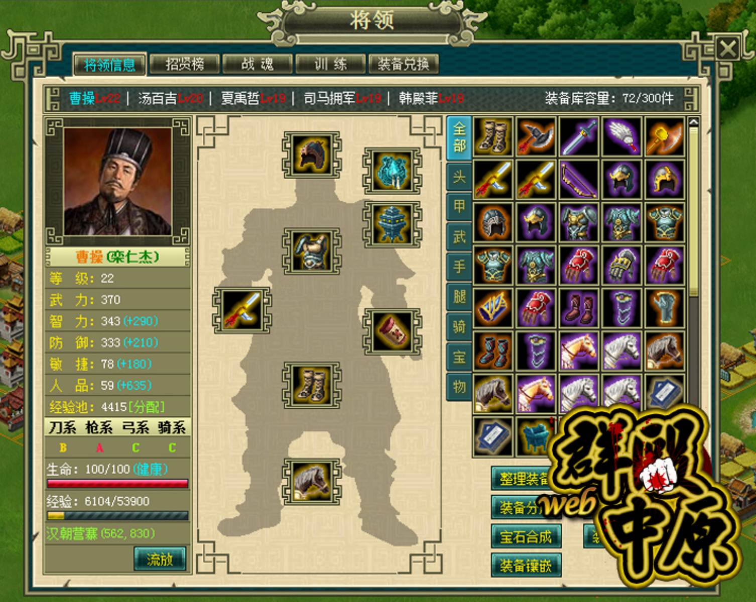 群毆中原 Web》中,玩家們除了可招募一般的武將之外,更可以尋求各朝代著名將領成為你麾下大將,藉由附身於武將之中,將可助你爭霸中原。