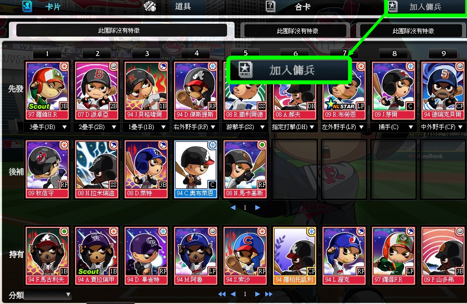 全民打棒球 2 Online》─傭兵系統」實現。玩家只要善用傭兵系統,除可保有球隊本身的組合隊效果外,更可讓球員強大火力發揮到淋漓盡致。
