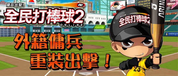 全民打棒球 2 Online》─傭兵系統」全新版本,最大的特色為玩家可透過外籍傭兵的加入,自由將 CPBL 的球員放進 MBL 球隊中,或是將 MBL 球員放進 CPBL 球隊中自由組合隊伍,使球隊戰力全面提升,發揮更強大的效果。不管是想將 MLB 的強打「A.Rod」,與 CPBL 中兄弟象的「恰恰-彭政閔」、「阿振-陳瑞振」組成黃金