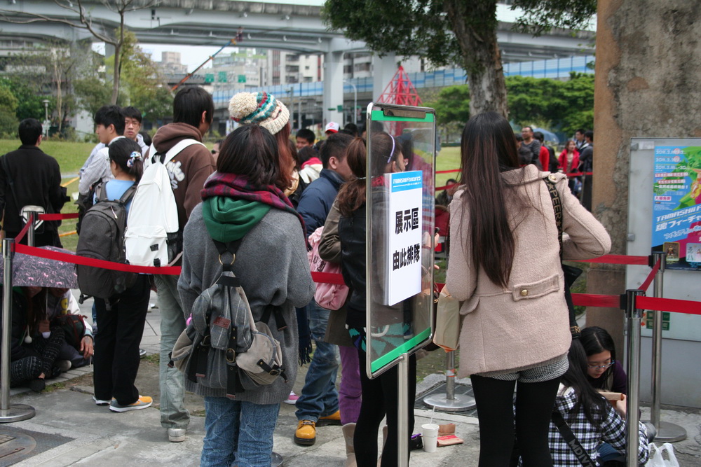 活動還未到開始時間,已經可以看到有許多參加玩家於華山會場外排隊購買限定商品。一般入口處也於 10 點之後漸漸湧入人潮,就算是工作日的禮拜五,也有許多熱情玩家搶鮮參加活動。