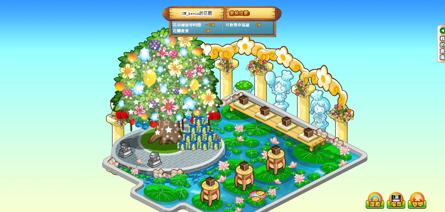 全新改版的「花園系統」,玩家每次採收花朵即可獲得幸福值,玩家間還可透過相互送禮,快速累積達福值,每送一次禮物「家族樹」旁就會多出一個禮盒,收取家族禮盒就可以快速增加家族幸福值,數值愈高家族樹也會愈來愈茁壯。