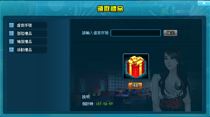 1.領取虛寶序號後,進入遊戲後點選上方『禮』字圖樣