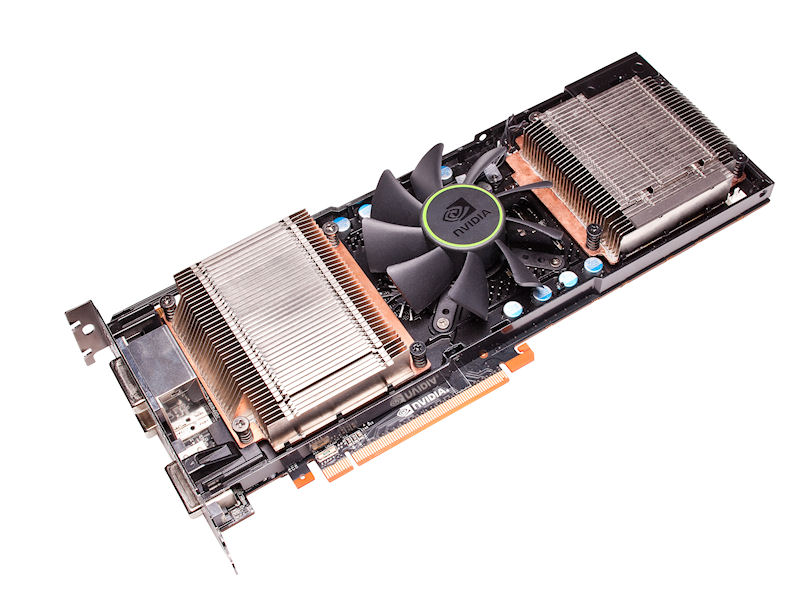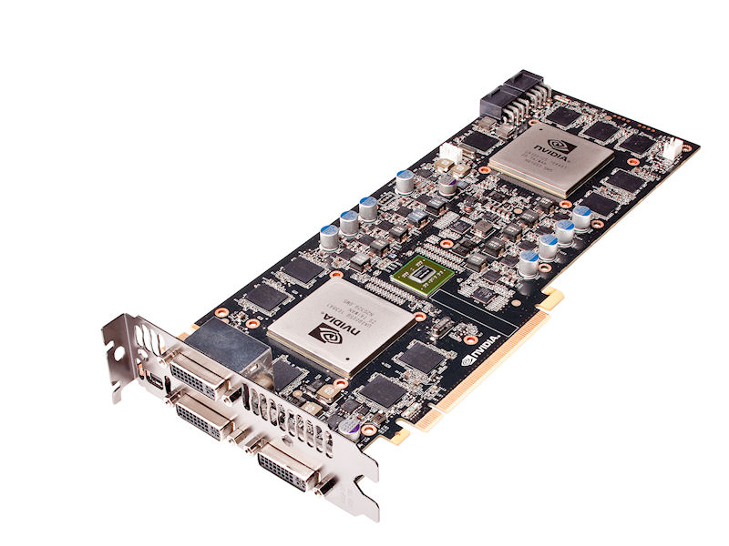GeForce GTX 590 是費米系列首款採用單卡雙繪圖處理器設計的頂級繪圖卡,在單張繪圖卡上配備了 2 組完整規格的 GF110 繪圖處理器,具備 1024 組串流處理器與 3GB 繪圖記憶體,可提供比單繪圖處理器頂級繪圖卡 GeForce GTX 580 高出 50 %的處理效能。