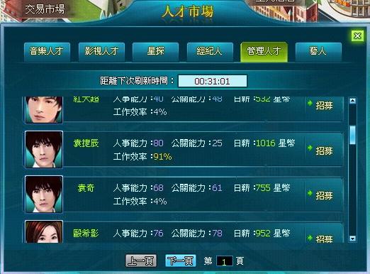 一般來說,在人才市場中出現 4 星天賦藝人的機率很低,挖角藝人也需要公司有一定的規模才行,所以,一開始想要招募到一個有潛力的藝人,就需要眼光比較好的星探去發掘,只要派遣一位能力優秀的星探,通常是會有蠻不錯的成績!再不然,就是去看人事部的應聘列表,一些有能力的藝人可是會毛遂自薦的。