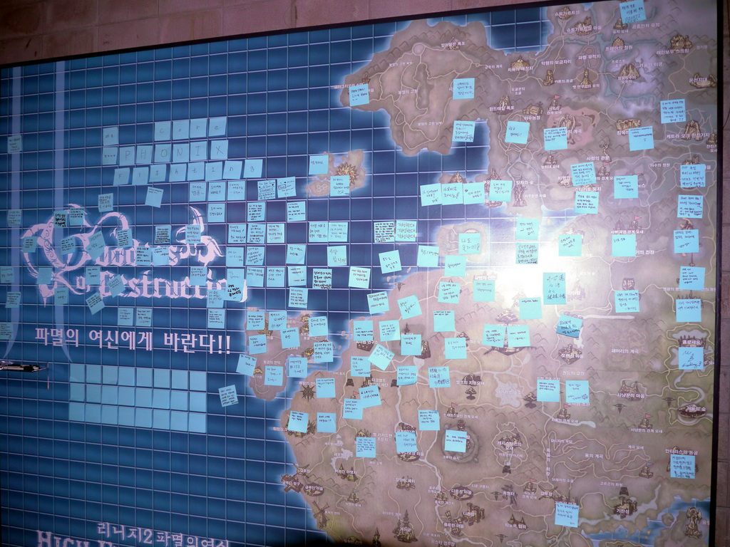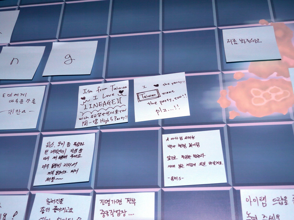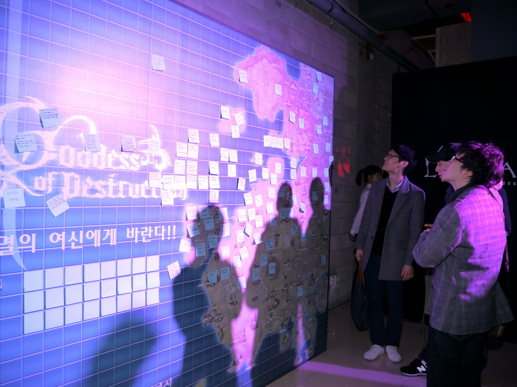 NCsoft 為了迎接《天堂 2》第三波大改版《毀滅女神》即將於今年上半年在韓國登場,週六在首爾舉辦了毀滅女神見面會,玩家在踏進會場之前,就可以看到巨幅毀滅女神的海報佈置,踏入會場後,牆上有著《毀滅女神》改版職業的介紹,而每個玩家可以拿起筆寫下個人的心願,張貼在《天堂 2》地圖的牆面上,在接下來的活動中,金澤憲就將抽出三名幸運玩家當場實現玩家的願望。
