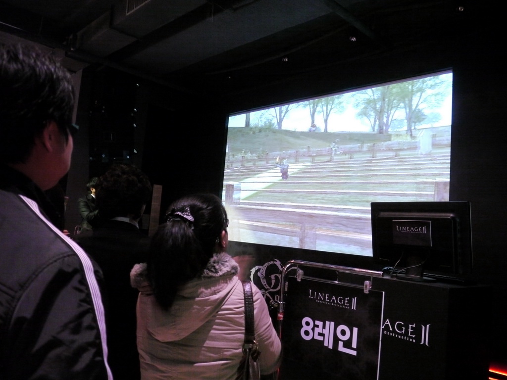 另一批玩家則是先玩怪物競賽活動,現場結合《天堂 2》的競速比賽畫面,由玩家分為八組來預測誰會獲勝,預測中的玩家可以獲得一組《天堂 2》韓版虛擬道具序號。