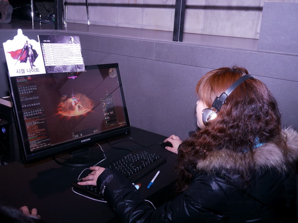 現場還有衝武器達人活動,讓玩家試試看自己的手氣如何,每當玩家衝過、現場就響起歡呼聲,有的玩家一口氣把武器衝到 +15,也有玩家衝過 +4 就爆了,而台灣玩家「夢想寶貝魚」也上台在韓國玩家加油聲中來嘗試衝武器。