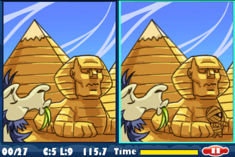 找碴英雄!》遊戲每題僅設計一點差異處,在 10 秒鐘內答題成功即可;但若有幾個題目一時找不到差異點也無妨,只要能在關卡的 2 分鐘限時內答對最低門檻題數,一樣能繼續迎戰外星人。挑戰動腦速度和犀利觀察力,每一刻都不冷場。