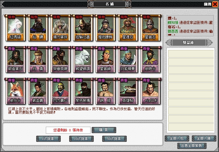 西域雖然充滿了挑戰,但也潛藏許多危機,傳說中的四十大盜趁著這個機會,再度重現江湖,他們潛伏在各個國家,化身為你身邊的人,只有官府所頒發的佈告有他們的真實面貌。玩家可以藉由購買佈告,透過『名捕系統』來緝拿這些藏身在民間的危險份子。官府也會頒發獎賞給抓賊有功的玩家們,除了有各式實用虛寶、衝裝道具外,還有經驗之書、威望錦旗及橙色裝備!