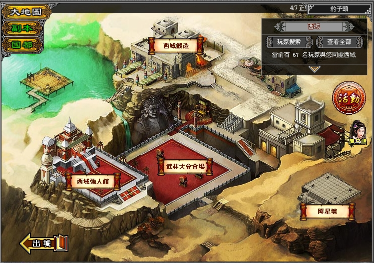 此外在西域中還能找到『強人館』,玩家可以與裡面的強者切磋討教,獲勝後可以得到積分及星宿石,用來兌換更強大的裝備。而更具實力的玩家,也可到聚星壇挑戰天罡地煞 108 星,將他們擊敗後便可取而代之,成為新一代的