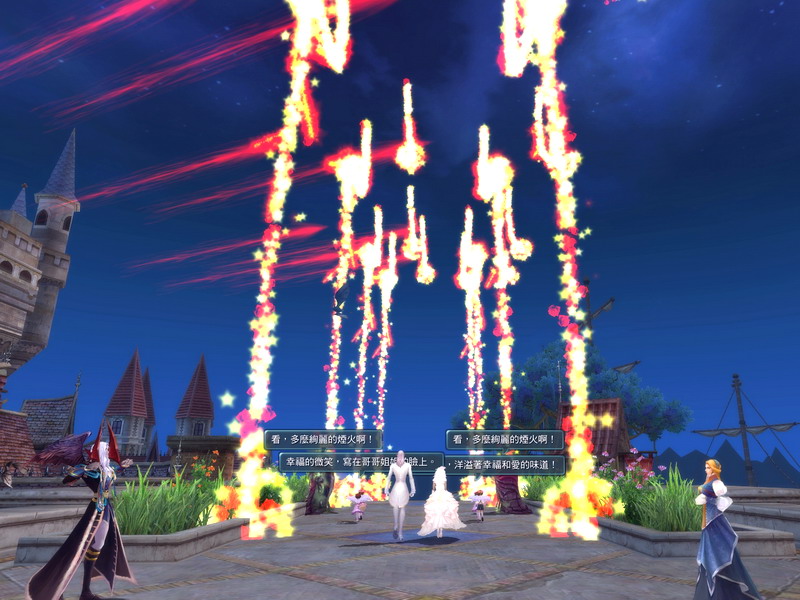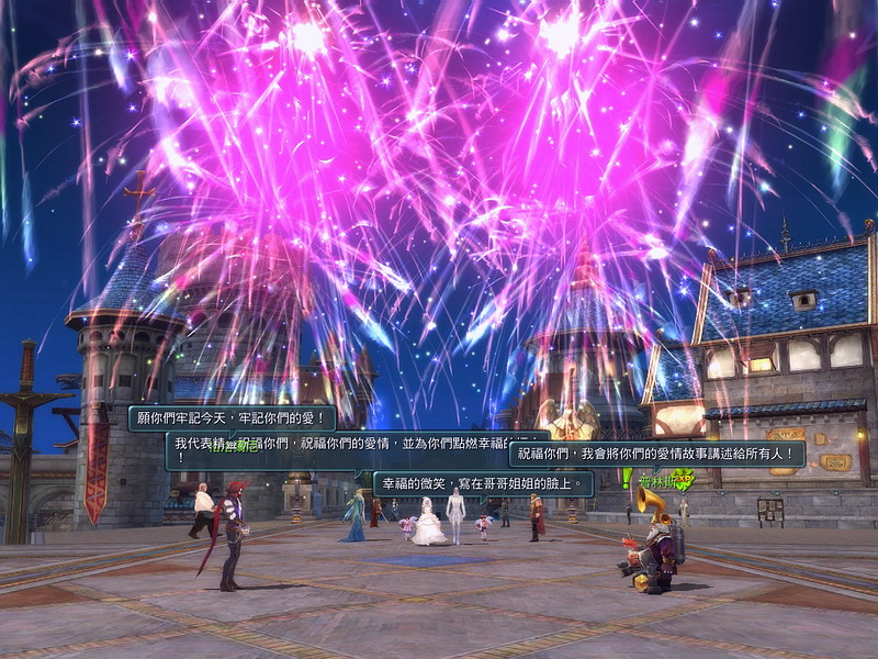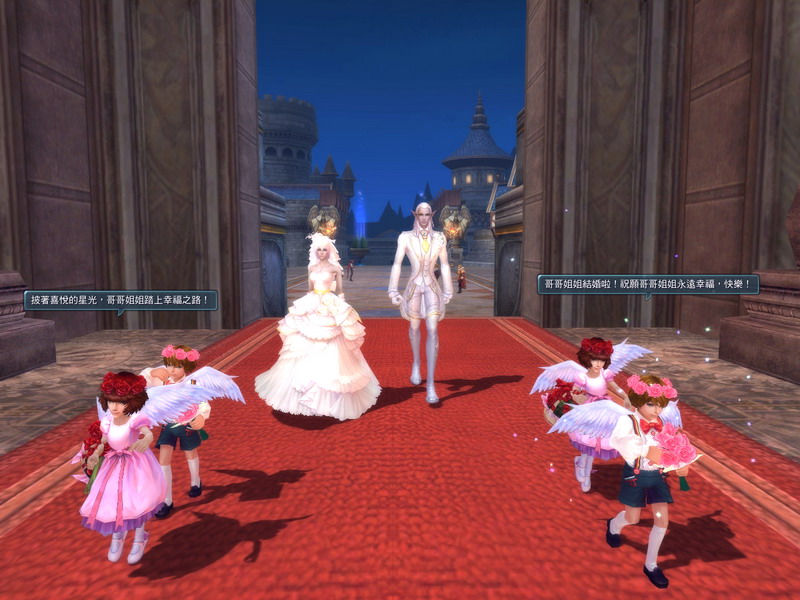 不過,結婚這麼重要的事情,怎麼可以就只是簡單交換個戒指就完事了呢?!遊戲特別設計了豪華盛大又浪漫的戶外婚禮,希望讓玩家永遠記得這一刻。結為夫妻的玩家,只要持有愛神之證就可以向愛之使者申請結婚巡遊慶典。當慶典開始,自由港的眾多 NPC 都會聞訊前來恭賀,在可愛小花童的陪伴下,新人緩緩走向紅毯那一端。璀璨絢麗的煙火,此起彼落的祝福之聲,交織成一幅令人欣羨不已的甜蜜幸福景象。