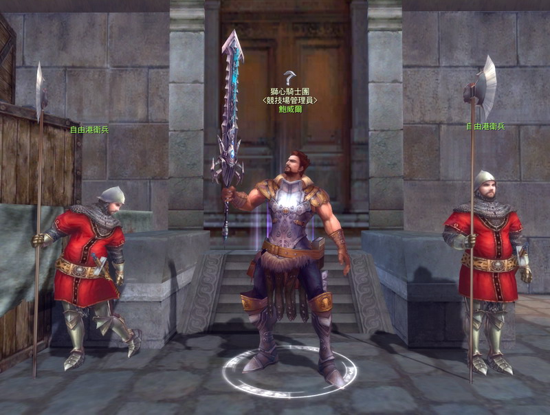 | 競技場管理員鮑威爾,他身後就是眾多競技場兌換NPC的入口 |