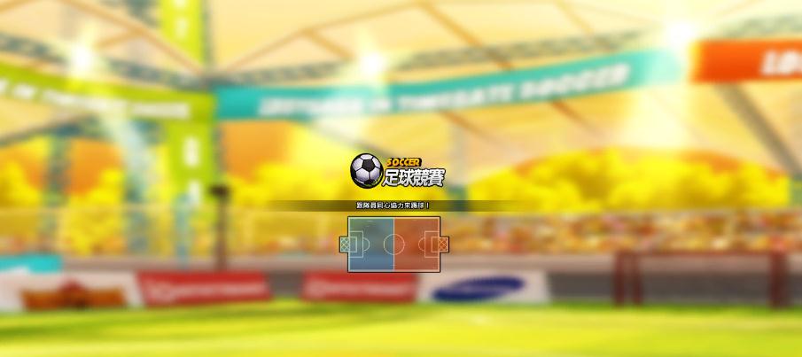 | 足球場地分為紅藍兩區 將球擊入對方網內即算得分 |