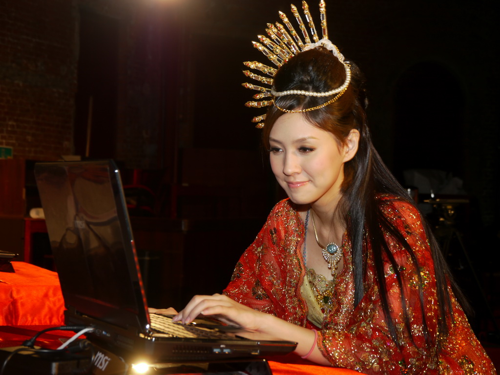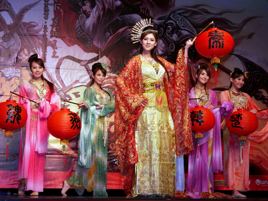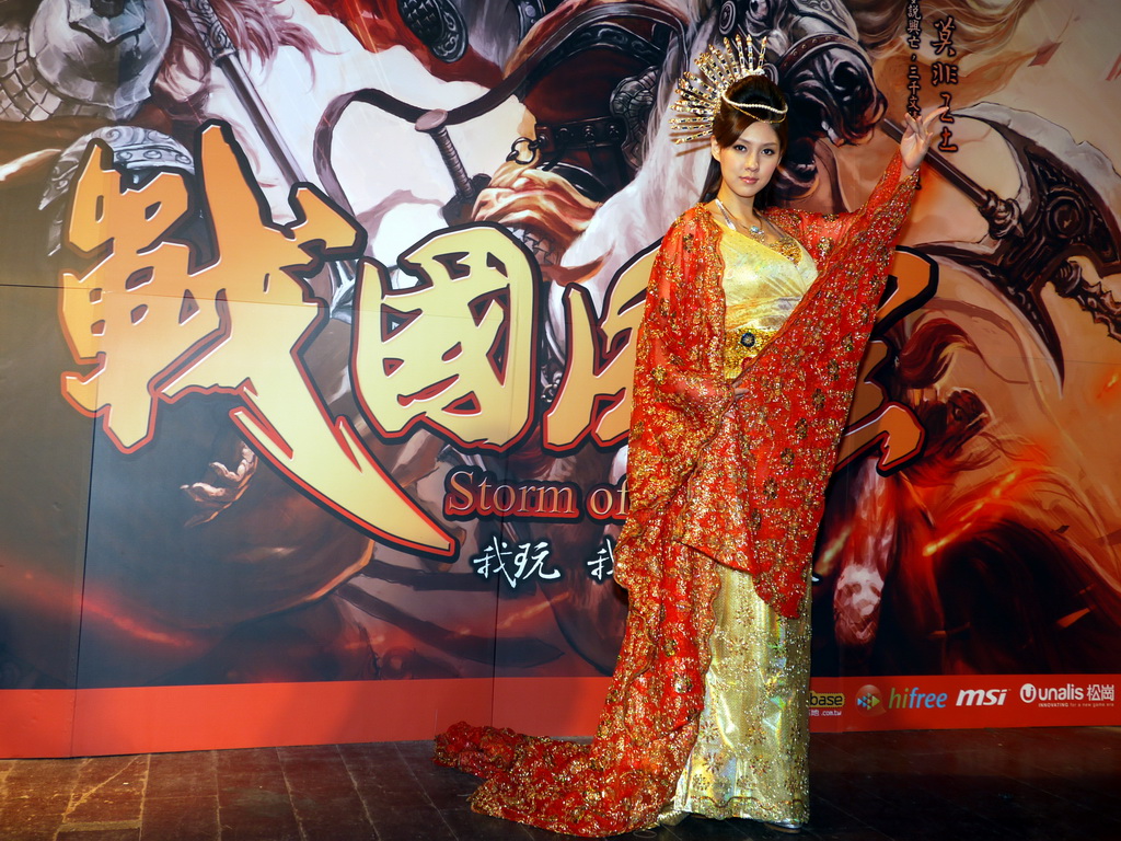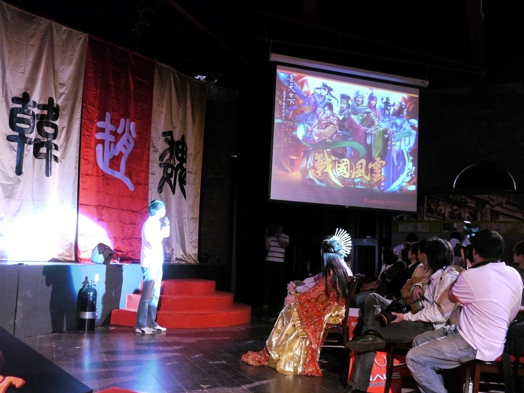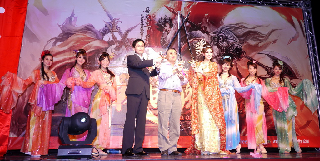 」,隨即在代表戰國六國舞者的簇擁下,朱芯儀以古裝扮演美女西施現身,並與鄭宏森、鄭大岳共同舉劍、在現場高喊「我玩、我戰、我征服」口號下,正式宣示《
