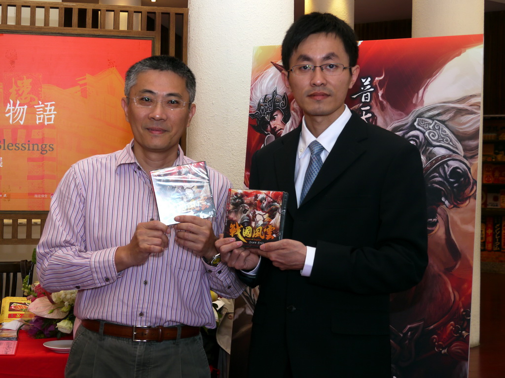 》明(21)日即將在台上市,由爆紅《犀利人妻》一劇中以「小三」出名的女演員朱芯儀與原廠網易製作人鄭大岳、松崗科技董事長鄭宏森共同拔劍誓師,營造上市聲勢。鄭大岳現場剖析遊戲吸引人之處包括排兵佈陣、裝備煉製、占卜系統,乃至於可追求統一戰國天下的樂趣,並且為玩家透露未來將釋出的遊戲新研發內容。