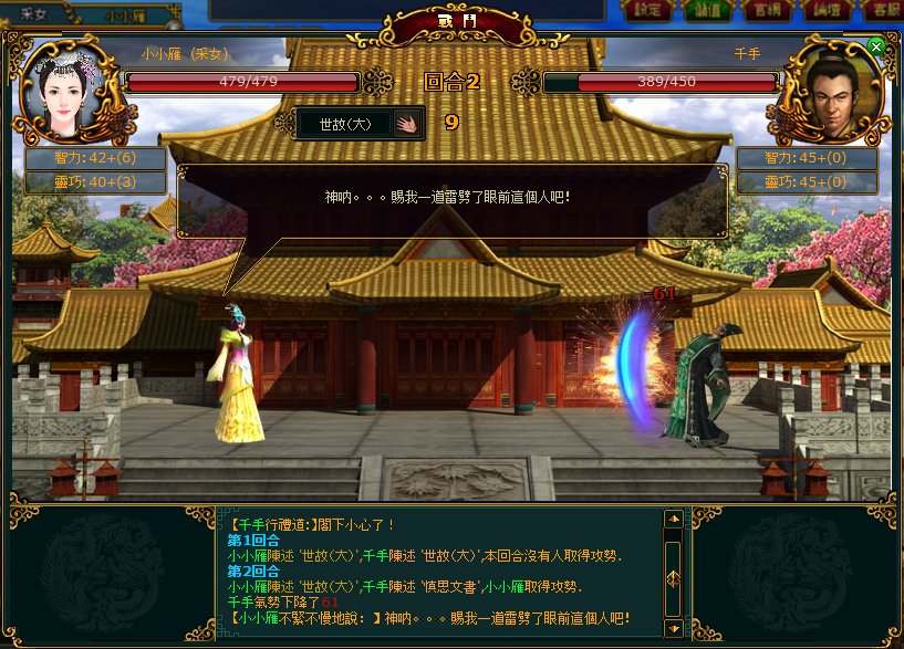宮廷中不允許武鬥,只有文鬥。舌戰便是文鬥中,以口舌上的較量來分出高下,是遊戲中最直接的衝突形式,綜合玩家之間的屬性能力和臨場策略的較量。