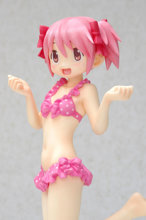 總之就在作品完結後,除了 DVD 與 BD 之外的其他周邊商品自然也不能落後的就要陸續推出,而首先亮相的 Figure 居然不是制服版也不是魔法少女的變身版,而是......泳裝版咦 O ∀O?!
