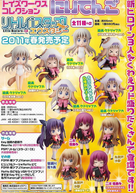 「トイズワークスコレクションにいてんご リトルバスターズ!EX」 發售日期:5 月 製作單位:キャラアニ 定 價:8160 日圓 備 註:12 個一組 |