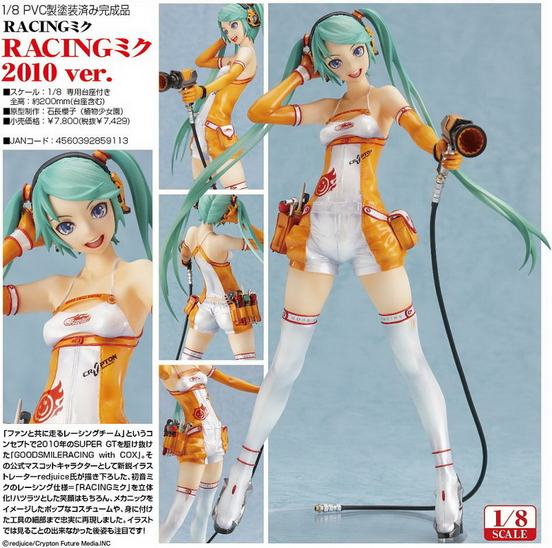 「RACINGミク 2010 ver.」 發售日期:5 月 製作單位:グッドスマイルレーシング 定 價:7800 日圓 備 註:1/8 PVC 塗裝完成品,全高約 200 mm |