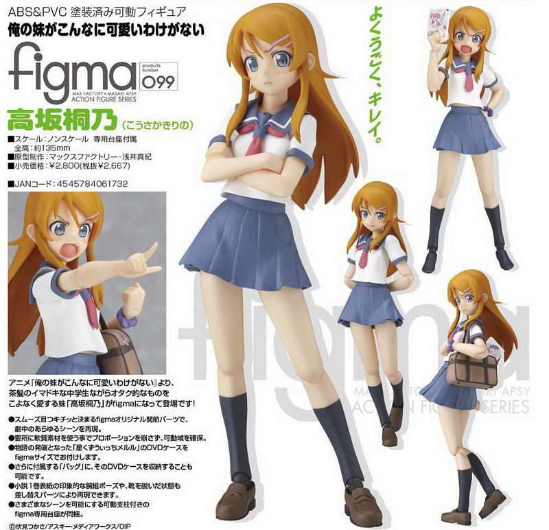 「figma 高坂桐乃」 發售日期:5 月 製作單位:マックスファクトリー 定 價:2800 日圓 備 註:PVC、ABS 塗裝完成品,全高約 135 mm |