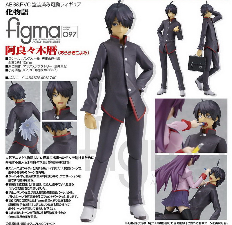 「figma 阿良々木暦」 發售日期:5 月 製作單位:マックスファクトリー 定 價:2800 日圓 備 註:PVC、ABS 塗裝完成品,全高約 140 mm |