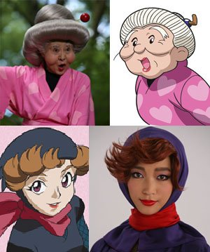 | 中村玉緒飾演的老婆婆版 (上圖) 與杏飾演的年輕美女版 |