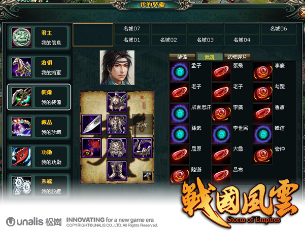 武魂強力效果以及 32 種弱化效果;目前一共開放 100 個高等名將、39 的低等名將以及 32 個