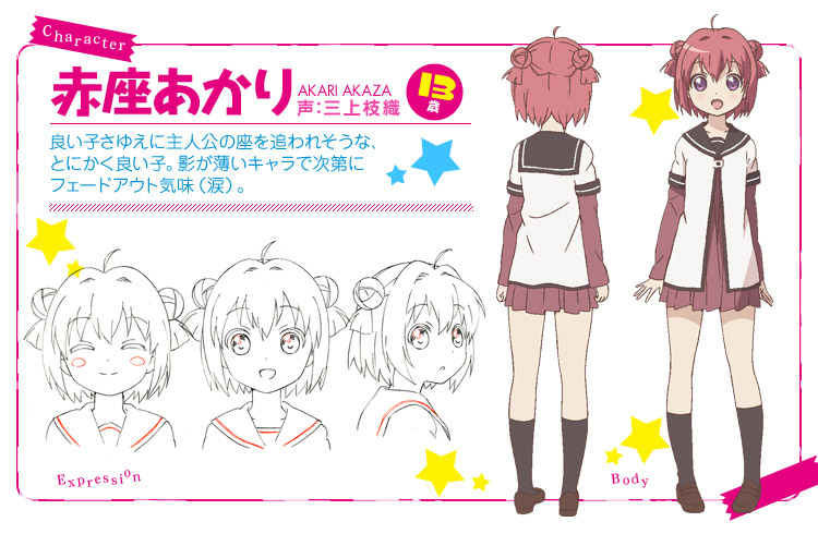 | 13 歲,與作中人氣動畫的主角相似的可愛女孩。 |