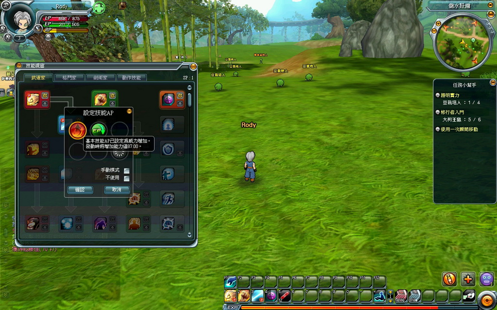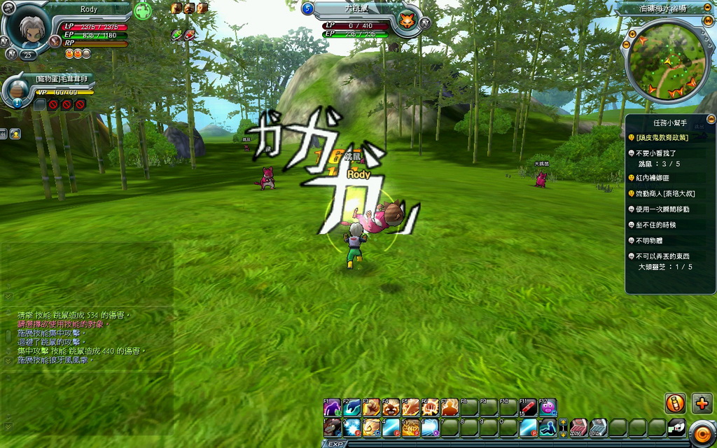 所以只好先一直持續打怪,或是利用 Z 鍵來集氣來累積 RP 球,以便施展 AP 技能;但也發現若是中間沒有進行戰鬥動作時候,RP 也會慢慢減少就是。