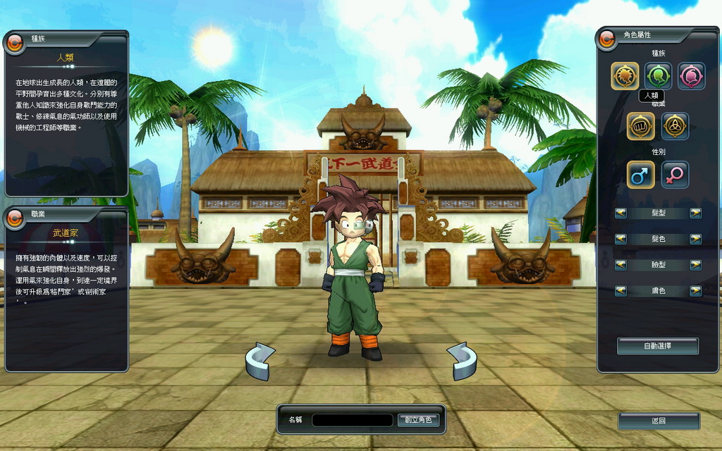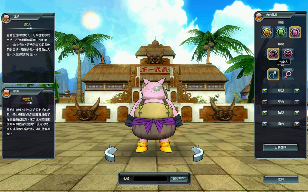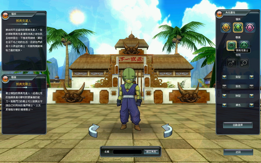 當一開始進入遊戲後,可以在人物創造畫面,看到有人類、那美克星人和魔人這三大種族可供選擇,每個種族又各分成兩個不同的職業,與原著漫畫中的設定一樣。