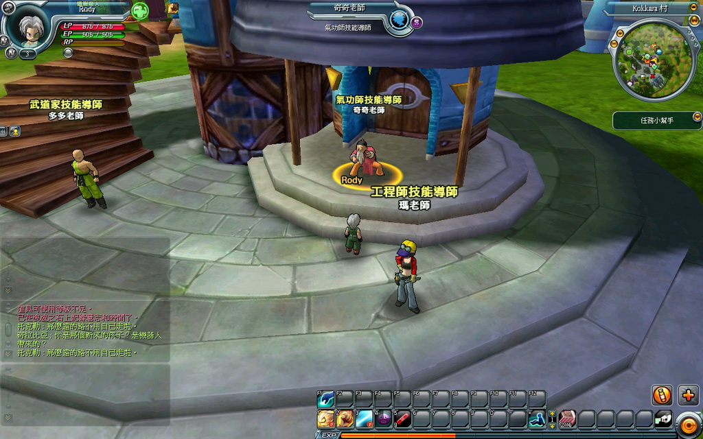當一開始到了新手村之後,就可看到為數眾多的 NPC 與設施。每個 NPC 與設施都各有其功用: