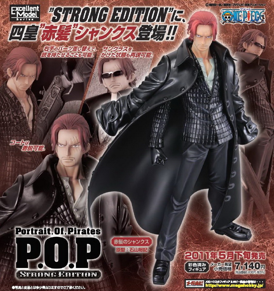 「エクセレントモデル Portrait.Of.Pirates `STRONG EDITION` 赤髪のシャンクス」 發售日期:5 月下旬 製作單位:メガハウス 定 價:7140 日圓 備 註:1/8 塗裝完成品,全高約 240 mm |
