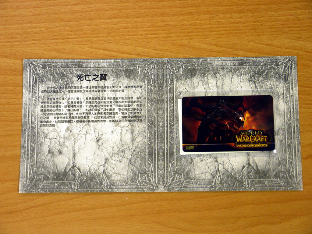 》推出的部落、聯盟陣營的悠遊卡套組合,是各自含兩張悠遊卡與陣營卡套、掛帶一條(例如聯盟版含聯盟卡及狼人悠遊卡各一張以及聯盟卡套、掛帶一條;部落版內含部落及哥布林悠遊卡各一張以及部落卡套、掛帶一條),售價各為 750 元。如果是蒐集部落跟聯盟各一套者,就可以得到隱藏版的死亡之翼悠遊卡,兩套合起來的價格是 1350 元。