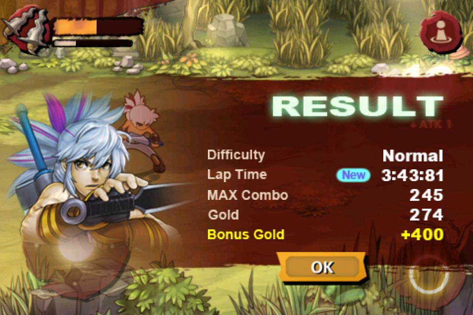 遊戲目標是要攻擊關卡內地圖的怪物到一定程度後,才會開啟下一張地圖入口,這樣持續闖關下去,最後會進入 BOSS 地圖,擊倒後就會結算這一個關卡的成績。關卡結束後會看到整個森林闖關地圖,也就是 20 個關卡的全覽,下一步可選擇挑戰全新或之前破過的關卡,接著在森林地圖的左下角,就可選擇 NORMAL(普通)、HARD(困難)、HELL(地獄)三種關卡難度。