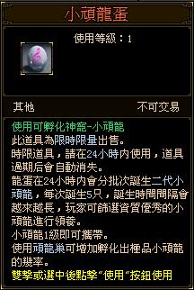 小頑龍的寵物蛋在商城中會以限時限量的方式出售,此外,不同外型的小頑龍,也擁有不同的外形和特效。