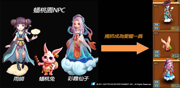 桃園最近遭到不速之客「彩霞仙子」、「雨師」以及「蟠桃兔」所佔據,太白金星與各路神仙需要各位玩家親自進入「蟠