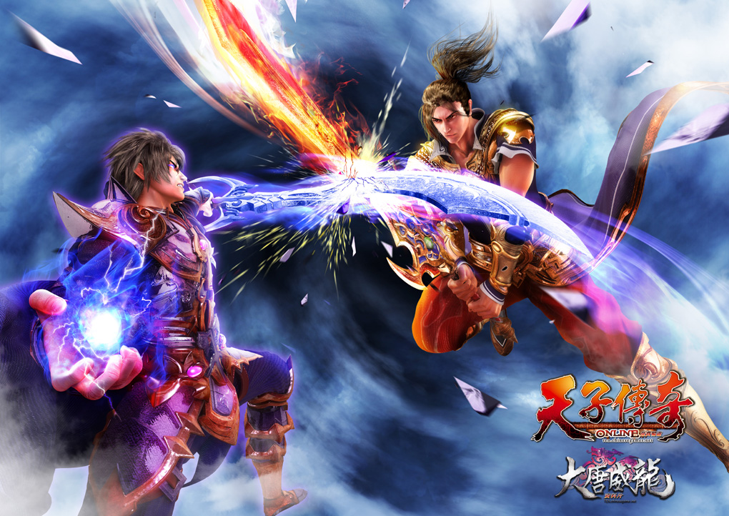 天子傳奇 Online》繼第一部「流氓天子」資料片推出歷經「劉邦」與「項羽」無數征戰後,第二部全新資料片─「大唐威龍」將於明日(26)隆重改版,帶領玩家進入隋朝末年紛亂時代,看隋末煬帝暴政「李世民」如何發動政變邁向成王之路,玩家也將感受改朝換代風雨欲來的緊張情勢。「摩訶葉」佈下成皇大計促使「李世民」在身世之謎與「摩訶葉」權威之間擺盪,充滿恩怨的精采劇情都將在本次改版中呈現!玩家也將與「楊玄感」、「虯髯客」、「程咬金」等知名人物交鋒,且將勇闖「太原」、「峨嵋金頂」、「東都洛陽」、「秦皇陵」、「京城」等全新場景。本次改版還推出可任意改變角色外型與性別的「精魄變身」、變化多元造型的「飛羽」、「靈獸競技場」等全新系統,讓玩家改朝征戰享有全新體驗。此外,歡慶改版官方不僅搶先於遊戲中舉辦「流氓天子