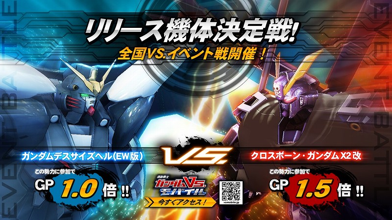 本次於日本地區展開的活動將會分為「地獄死神鋼彈 EW 版」陣營和「骨十字鋼彈 X2 改」陣營雙方對陣,勝利的一方將會決定先行在遊戲中釋出遊玩的機體,可以說是「釋出機體決定戰」,而勝利機體會於 6 月下旬登場。