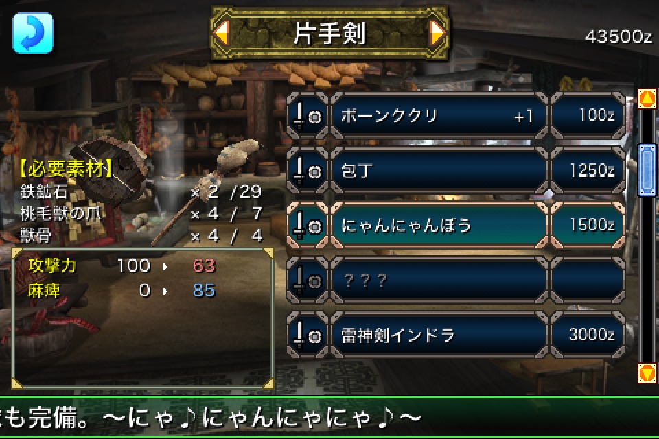 順利打倒怪物後就可以取得素材來打造新的武器防具,遊戲中收錄了「單手劍」、「大劍」、「雙劍」3 個系統約 40 種武器以及 13 種防具可以選擇。收錄「楊庫克」、「大名沙札米」、「巴巴康加」、「夫魯夫魯」等系列作熟悉的怪物。之外還可以透過藍牙連線進行雙人合作狩獵,合作遊玩時即使其中一名玩家力盡而倒下,只要另一名玩家順利過關,兩人也一樣可以取得報酬。