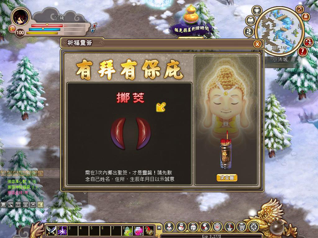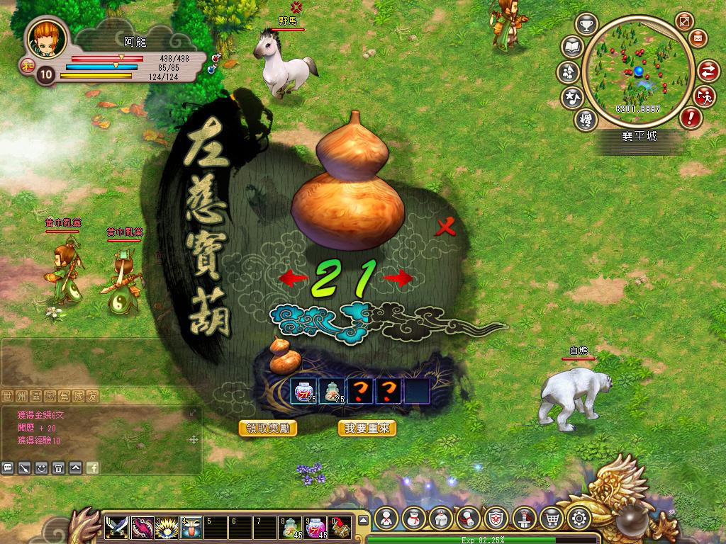 這邊要特別介紹遊戲中一個相當有趣的系統,在遊戲介面右上方有個奇怪的介面寫著【讓我搖擺】,這其實就是遊戲中獨樹一格的左慈寶葫蘆系統,玩家除了可以經由此系統拿到豐厚的獎勵外,其進行遊戲的方式也是非常特別!開始後會有 30 秒的時間給予玩家,此時運用鍵盤上的左右鍵,就可以累積寶葫蘆的能力值,進而達到此值積滿後,就能獲得獎賞!對於剛進入遊戲的玩家,可說是相當實用。