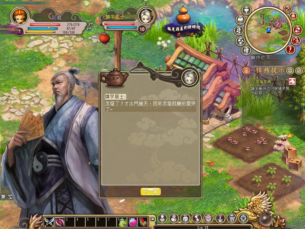| 玩家的義父靖宇居士,將會幫助玩家並傳授畢生所學 |