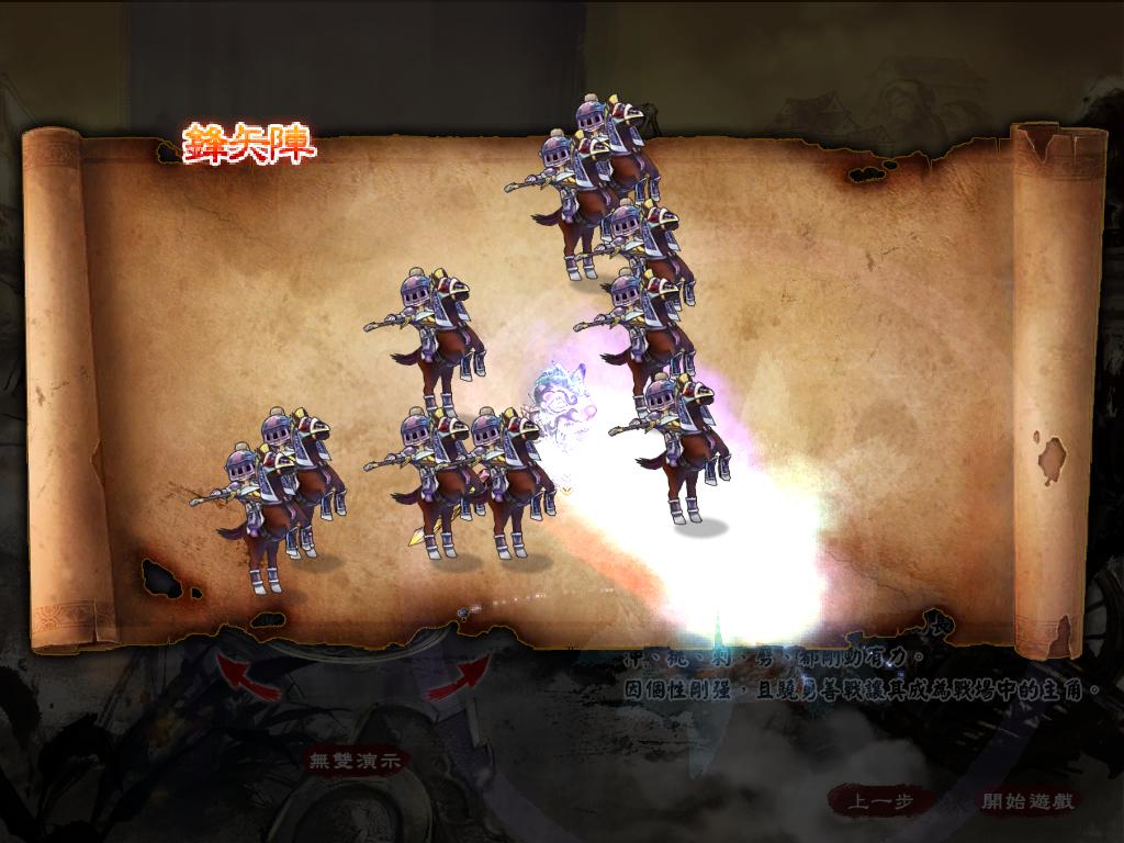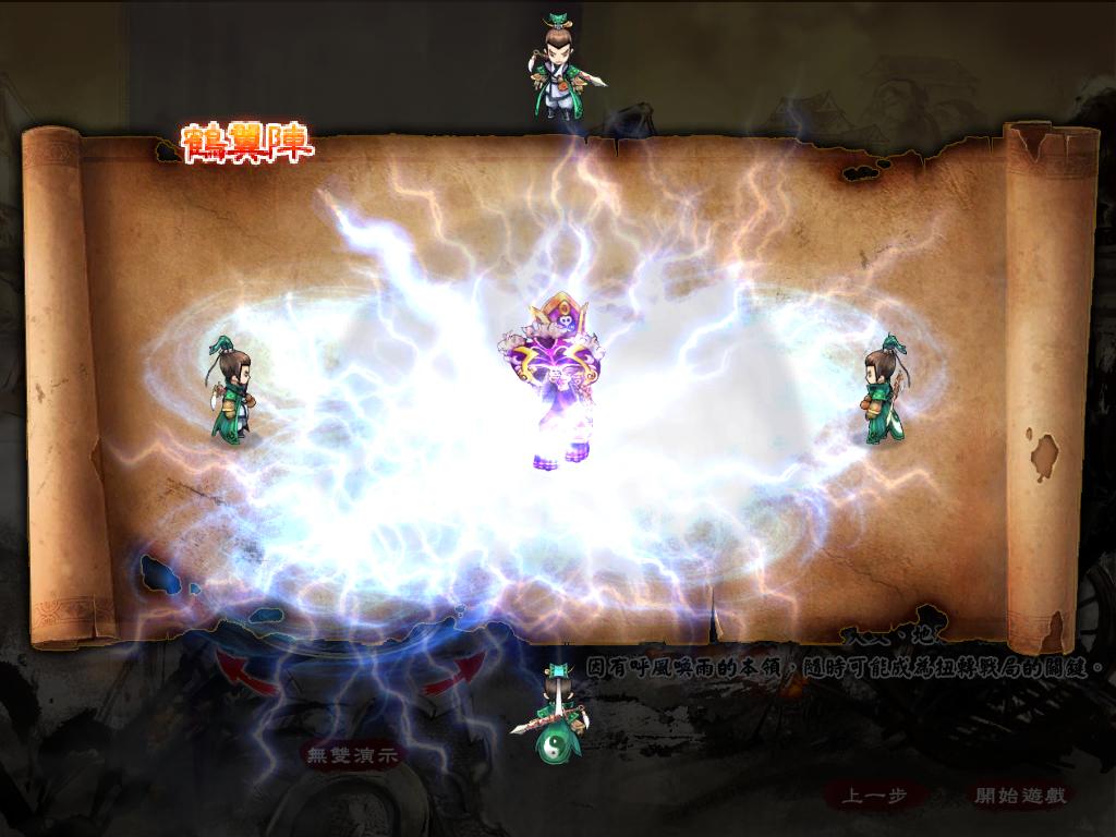 | 使用後進攻勢如破竹,鋒矢陣突圍剿滅敵人皆好用 | 召喚雷電之力,鶴翼陣之下避無可避 |