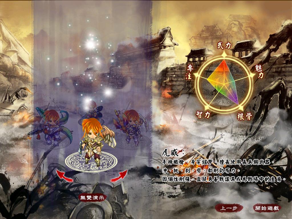 虎威:虎威基本上是一個十分容易上手的戰士類型角色,手持長兵器的特徵,看起來就是相當驍勇善戰的感覺。