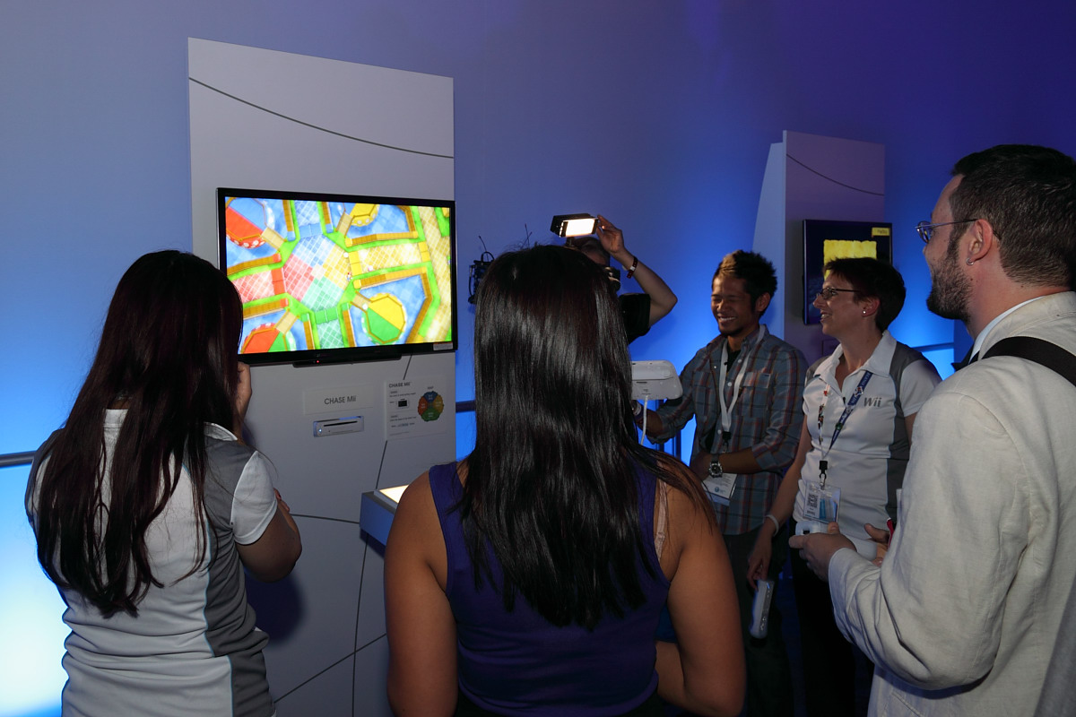 據說是現場最熱門試玩項目的《追趕跑跳碰 Mii》受限於時間因素而未能試玩到。這款展示是以多人同樂為主軸,使用 Wii U 控制器當鬼的玩家可以透過控制器螢幕畫面綜觀全局,使用 Wii 遙控器的玩家則是透過電視螢幕分割畫面合力捉鬼,可說是 Wii U 遙控器嶄新應用的典範。