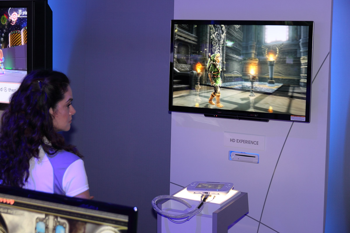 接下來試玩的同樣也是技術展示性質的《薩爾達傳說高解析度體驗》,是以先前推出的《薩爾達傳說:曙光公主》為主題所製作的高解析度版技術展示,玩家可以同時透過電視與控制器兩個螢幕來觀看林克進入神殿與大蜘蛛展開戰鬥的場面。展示中可以使用 Wii U 控制器即時切換場景的日夜狀態、改變觀看的攝影機視點,或是切換電視螢幕與控制器螢幕的主副狀態。展示中預設是以電視螢幕顯示主要畫面、Wii U 控制器螢幕顯示地圖等輔助資訊,不過可以透過開關對調。